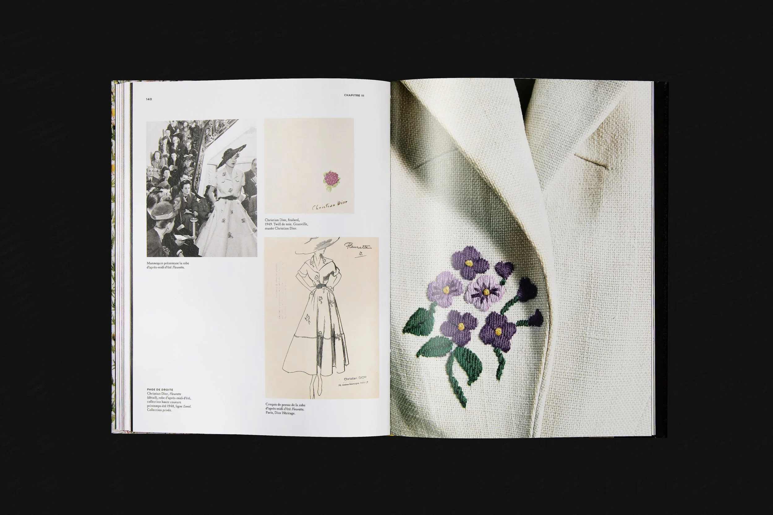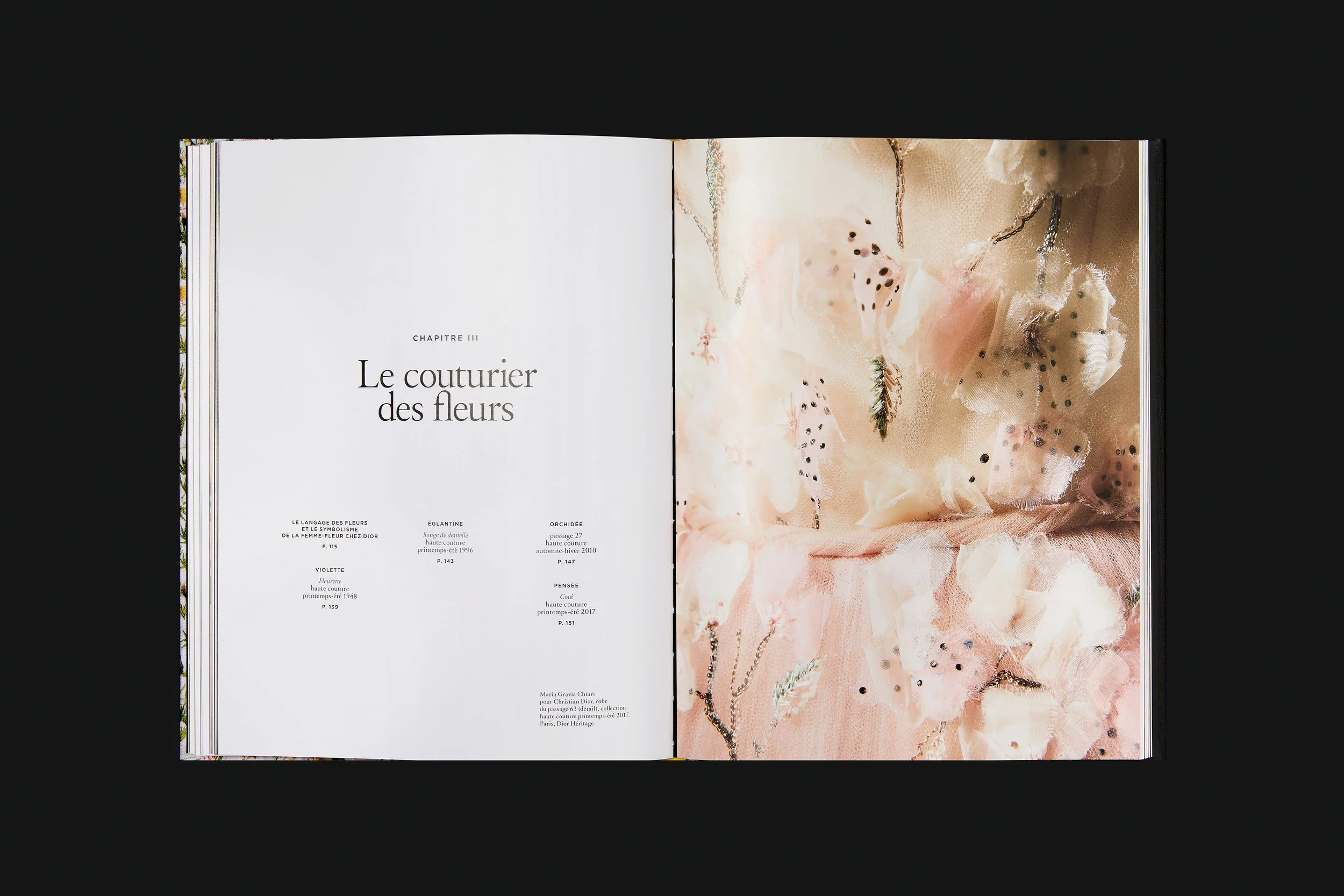 Structured through thematic chapters, the book traces this floral inspiration from Dior’s childhood in Granville to his later residences while highlighting its presence across couture and fragrance. It brings together archival materials, contemporary imagery, and a selection of silhouettes that reflect the enduring dialogue between nature and creation throughout the history of the House.
