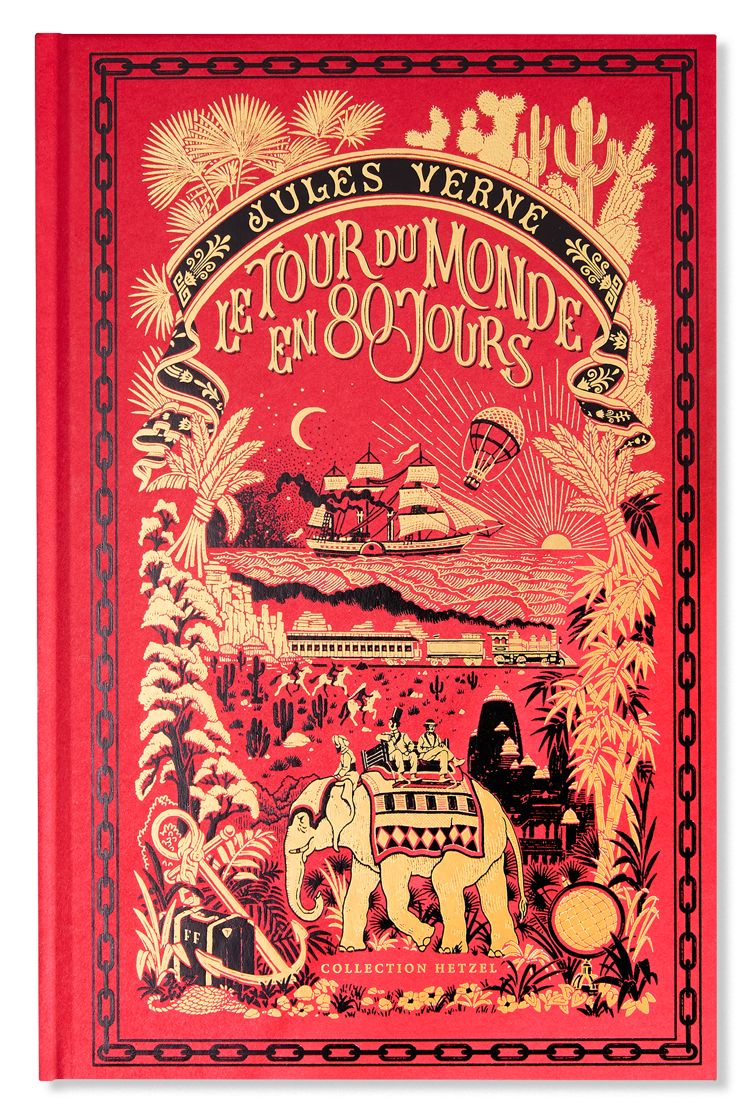 Art direction & editorial design for Jules verne's book ‘Around the World in Eighty Days’. Editions Du Chêne and Bureau Berger collaborated to launch a new modernized book collection, building up on past editions to revive Verne's work.